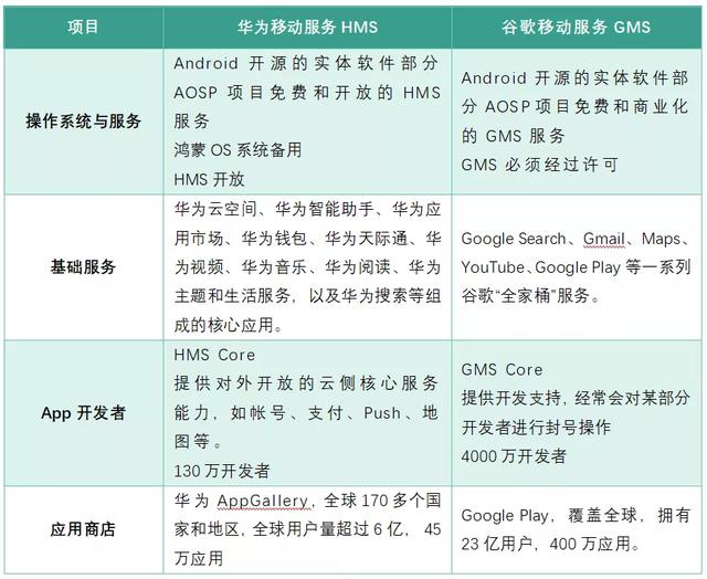 应该看到,华为HMS与谷歌GMS生态之间的差距: