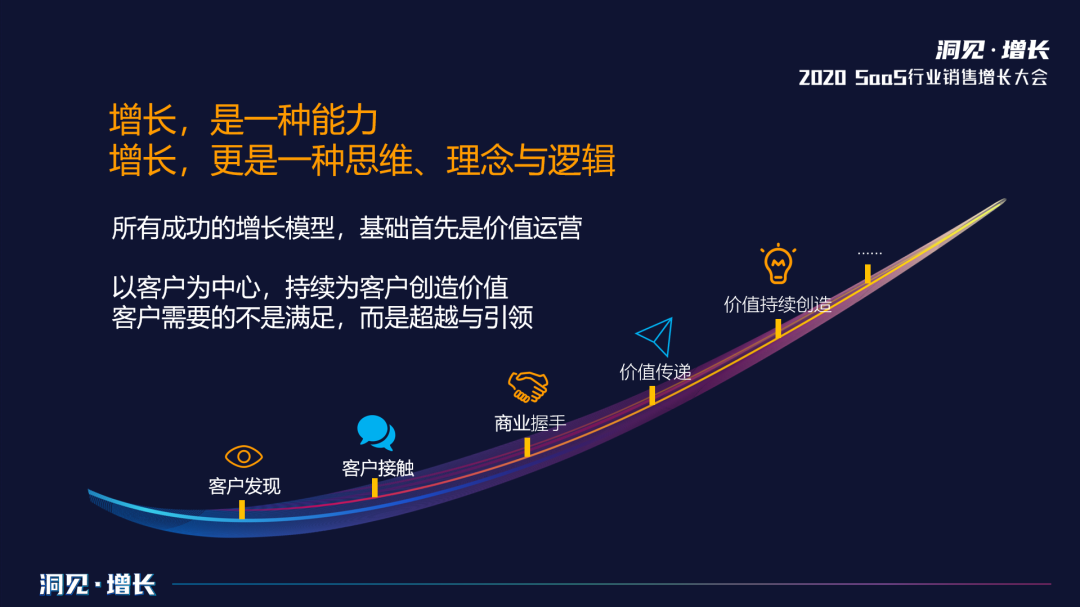 无论是欧美,还是中国本土,所有成功的增长模型都有一个基础,就是整个行业模型和模式一定要以客户为中心,围绕客户价值做价值运营,也就是价值发现、价值认可、价值再创造,并持续地加强创造的过程。客户需要的不是满足,而是超越与引领。做客户就是做对的客户,找对的客户,用最短的路径触及客户,同时创造最佳的营销场景和价值传导场景。以客户为中心,持续为客户创造价值是各种模型的根本和基础。