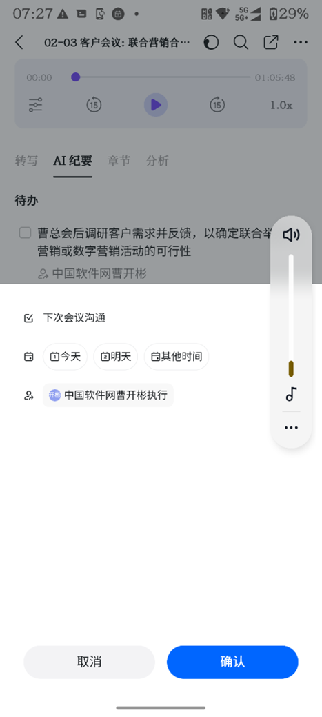从这个角度看,钉钉A1完全不是个“录音工具”,它就是推动我们工作往前推进的智能助理,是一个智能提醒、严格要求的好“伙伴”。